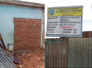 Perlu diketahui, dipapan plank proyek diumumkan, pembangunan pasar rakyat Labuhan Bilik , sumber dana APBD Labuhanbatu Tahun anggaran 2022 dan nilai proyek Rp 1.797.731.870,52. Pelaksanaan proyek CV.Zara Kemilau, dimulai pengerjaan bulan September 2022 dan selesai December 2022.