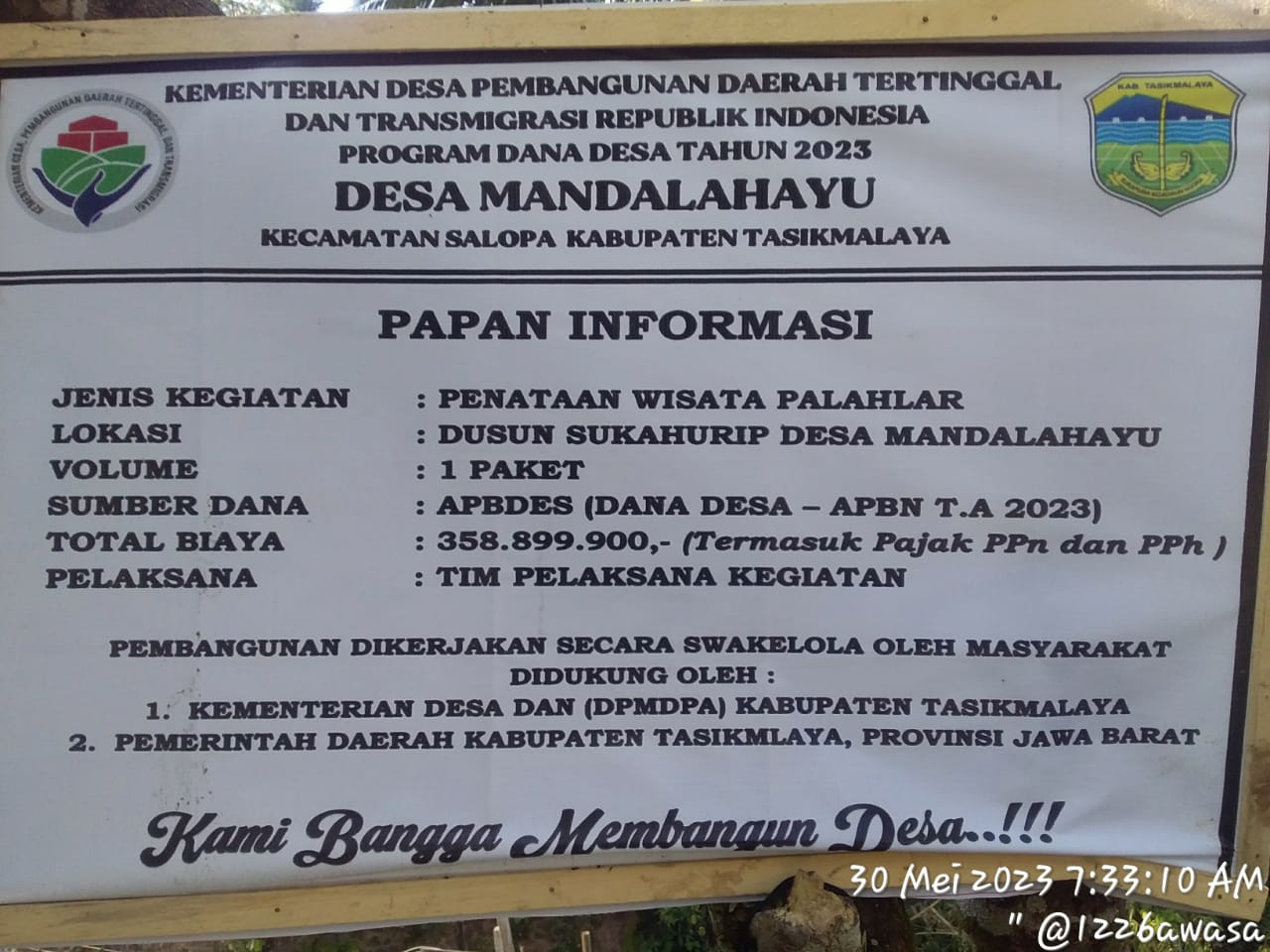 Pembangunan Tembok Penahan Tanah(TPT)dari anggaran dana desa Rp 358,899,900 di dusun sukahurip kecamatan salopa RT 04 RW 09 desa mandalahayu kabupaten Tasik Malaya di duga di kerjakan asal jadi ,