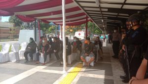 Setelah didata oleh polisi, selanjutnya peserta rapid antigen Covid-19 diminta antre terlebih dulu.