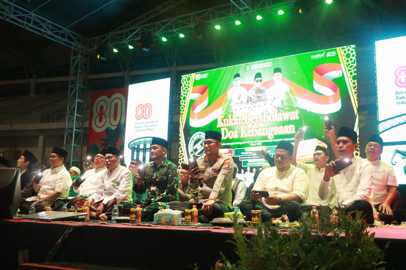 Gus Iqdam yang hadir bersama Hadroh Pusat Sabili Taubah menyampaikan tausiyah dengan gaya khasnya yang humanis dan menyentuh hati, sehingga berhasil memikat jamaah yang didominasi kaum muda. Ribuan masyarakat tampak khusyuk mengikuti lantunan sholawat dan doa kebangsaan.