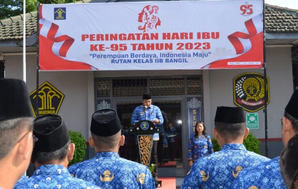 PASURUAN – Jum’at (22/12/2023) Rutan Bangil dipenuhi suasana yang begitu khidmat. Halaman utama rutan telah disiapkan untuk sebuah upacara istimewa, yakni peringatan Hari Ibu ke-95. Suara merdu lagu kebangsaan berkumandang melalui pengeras suara, menggetarkan hati setiap petugas yang hadir.