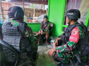 Keerom,Targethukum. com – Mempererat hubungan persaudaraan dengan tokoh-tokoh masyarakat di wilayah binaan, anggota Satgas Pamtas RI-PNG Yonif Mekanis 512/QY dari Pos Workwana melaksanakan kegiatan anjangsana ke rumah kepala Kampung Yamta Distrik Arso Kabupaten Keerom Papua.