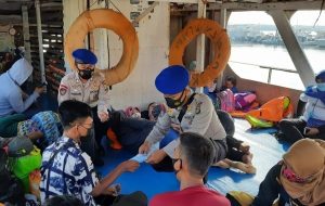 Diketahui, selain melakukan himbauan protokol kesehatan dan keselamatan berlayar aparat juga melakukan kegiatan pembagian masker medis dan peneguran kepada penumpang yang tidak menggunakan masker dengan baik dan benar serta menjaga jarak.