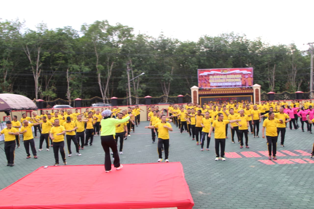 Semarak Jalan Santai dan Senam Bersama Warnai Kebersamaan Keluarga Besar Polres OKU Timur