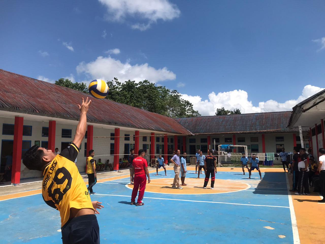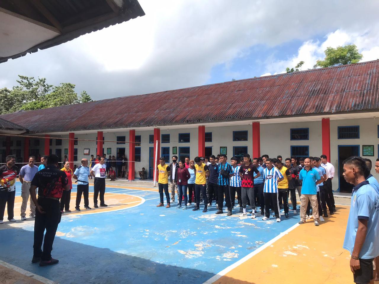 Selesai acara virtual bersama, Yohanis Varianto melanjutkan acara dengan dengan eksebisi pertandingan voli antar Pegawai Lapas Waikabubak melawan tim voli WBP Lapas Waikabubak.