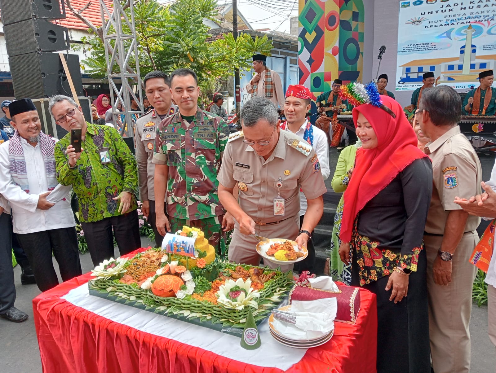 Jakarta Pusat.Targethukum.com-Danramil 08/JB Mayor Arm Hendri Nuryanto menghadiri acara Pesta Rakyat dalam rangka HUT DKI Jakarta ke-496 bertempat di depan Kantor Kecamatan Johar Baru Jl. Percetakan Negara II, Johar Baru Jakarta Pusat.(26/6/2023).