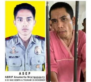 Dalam foto yang beredar tampak Asep sudah tidak mengenali dirinya lagi 17 tahun yang lalu sebagai seorang anggota polisi.
