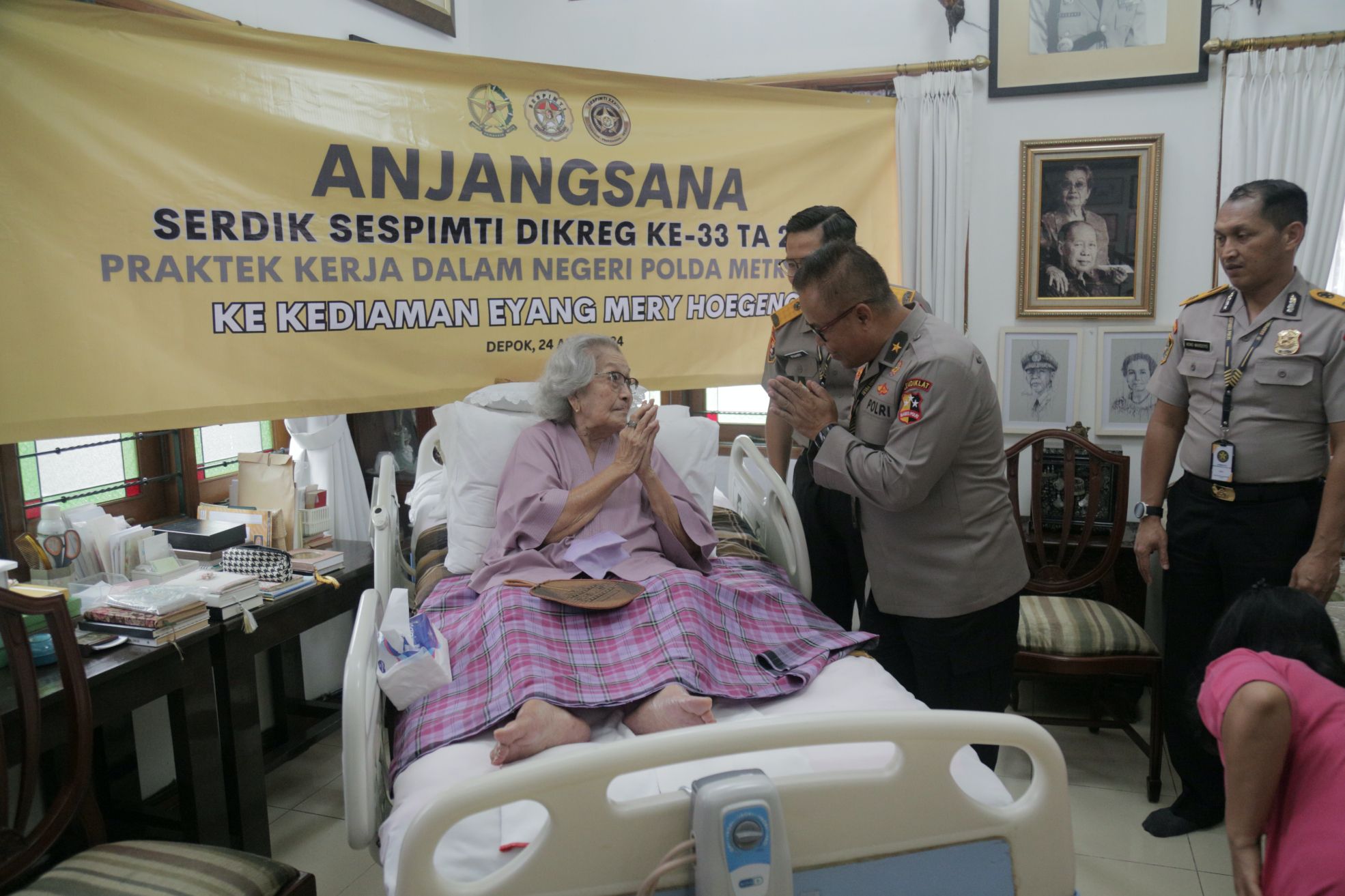 Di sela-sela kegiatan Praktek Kerja Dalam Negeri (PKDN) di Polda Metro Jaya peserta didik Sespimti Polri Dikreg ke-33 melaksanakan Anjangsana ke kediaman Ibu Mery Hoegeng di Depok Jawa Barat pada hari Rabu, 24 April 2024.