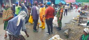 Bersinergi dengan Masyarakat menjaga kebersihan pasar agar tetap nyaman dan indah dipandang mata anggota TNI/Polri, ASN,Satpol PP, BNPBD beserta Tokoh Masyarakat Kab Paniai melaksanakan karya bhakti Pembersiahan pasar Enarotali.