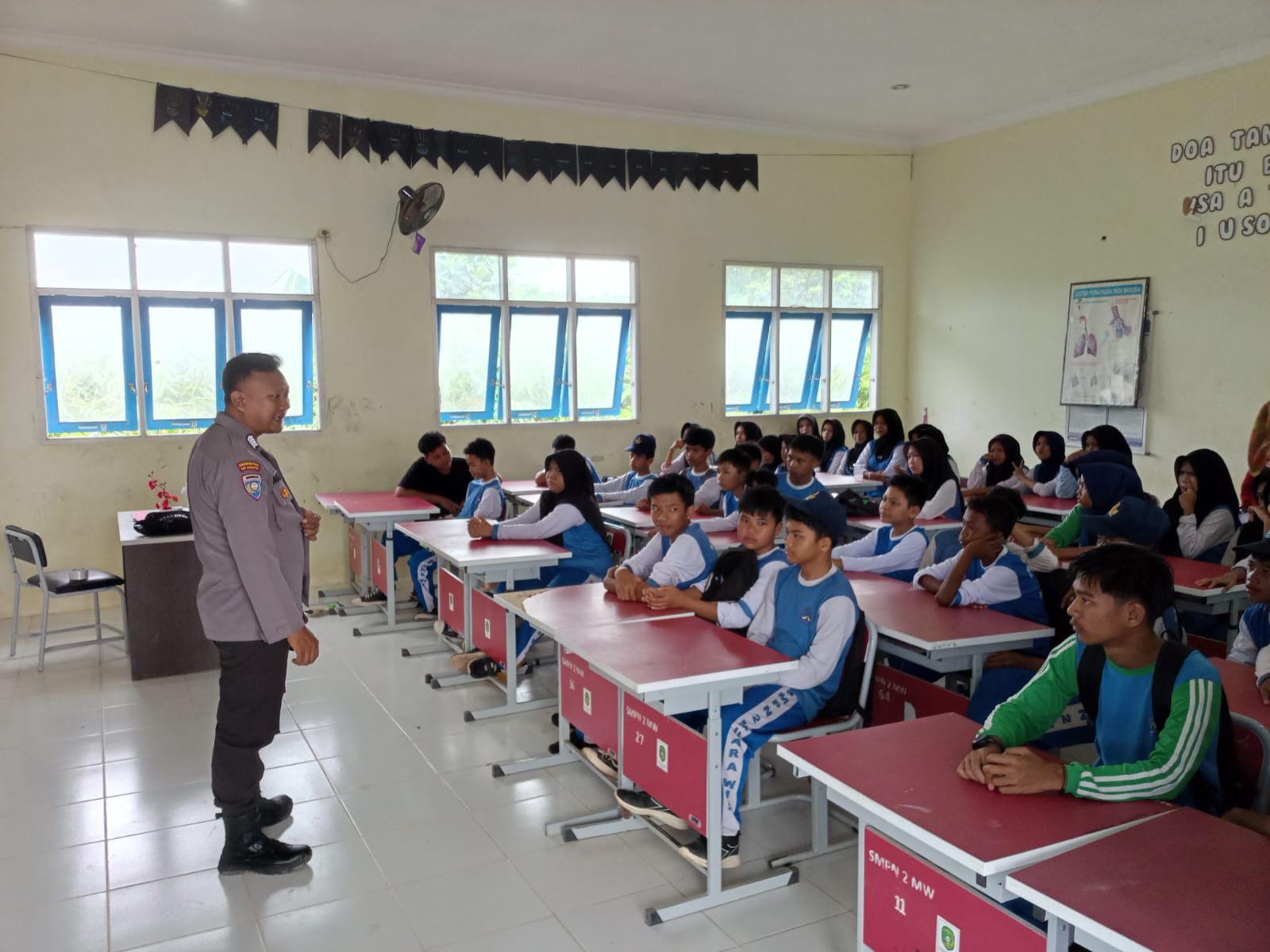 Sosialisasi ini dipimpin oleh Bhabinkamtibmas Desa Lebak Cilong, Bripka Agus Indratmo, dan dihadiri oleh guru SMPN 2 Muara Wis serta puluhan pelajar yang menjadi sasaran kegiatan.