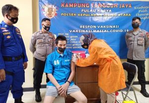 “Iya, hari ini kita melakukan kegiatan suntik vaksin massal dalam rangka program percepatan Vaksinasi Massal Covid-19 Nasional terhadap 20 orang tahanan yang berada di Rutan Polres Kepulauan Seribu Pulau Karya,” kata Kompol Nur Jannah Hayati Kabag Sumda Polres Kepulauan Seribu yang juga selalu Ketua Pelaksana Kegiatan.