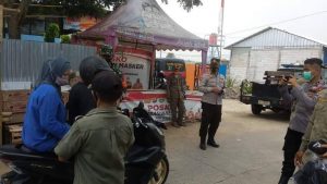 Kronjo,Targethukum.com – Polsek Kronjo Polresta Tangerang membagikan masker pada pedagang dan pembeli di Pasar Tradisional Kronjo Kabupaten Tangerang. Diketahui, kegiatan ini juga dilakukan bersama unsur Forkompimcam Kronjo Kabupaten Tangerang dalam rangka penegakan protokol kesehatan bagi masyarakat.