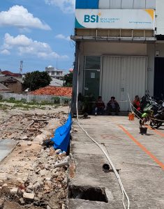 Sebuah bangunan gedung 3 Lantai milik Bank Syariah Indonesia (BSI) Kantor Cabang Tangerang, yang berada di Jl.Gatot Subroto RT.003/RW 001 Sangiang jaya Kota Tangerang, baru baru ini menjadi sorotan. Pasalnya, terlihat longsor di salah satu sisi bangunan, dengan panjang mencapai kurang lebih 10 meter persis di sepanjang pondasi bangunan.