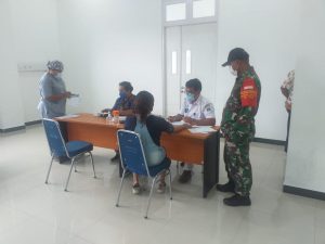 Bertempat di Rumah Sakit Umum Daerah Kab Biak Numfor (RSUD BIAK NUMFOR) di Kelurahan Brambaken, Distrik Samofa, Babinsa Koramil 1708-01/BN, Sertu Adi Asridi melakukan pendampingan dan memantau kegiatan Vaksinasi kepada warga masyarakat Kabupupaten Biak Numfor, Kamis (17/03/2022).