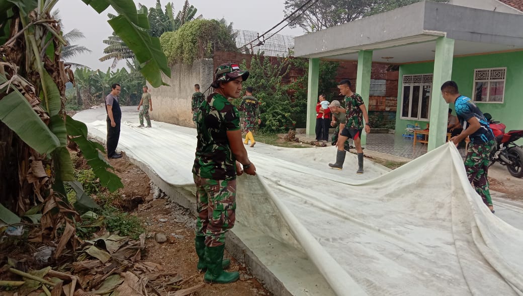Sedangkan, satgas lainnya, langsung menggelar plastik untuk dasar pengecoran jalan.