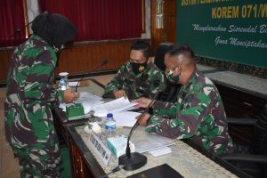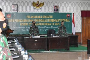 Banyumas,Targethukum. com – Guna meningkatkan data yang valid khususnya bidang kemampuan teritorial dan pembinaan teritorial di satuan jajaran Korem 071/Wijayakusuma, Korem 071/Wijayakusuma menggelar Sosialisasi Puanter dan Binwanwil Siterrem 071/Wijayakusuma TW. I TA 2021, Senin (29/3/2021) di Aula Jenderal Sudirman Makorem 071/Wijayakusuma, Sokaraja, Banyumas.