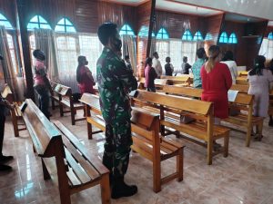 ENAROTALI,Targethukum.com-Tingkatkan keimanan dan ketaqwaan sebagai wujud SANTIAJI,dan sebagai landasan kehidupan sehari-hari,babinsa koramil 1703-01/Enarotali yang beragama nasrani melaksanakan ibadah di gereja GKI ZAITUN Enarotali,dist.paniai timur kab.paniai.minggu (11/07/2021)