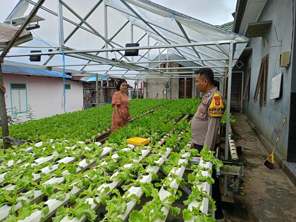 Bhabinkamtibmas Desa Bangun Rejo Kecamatan Tenggarong Seberang meninjau pertanian Hidroponik warga Desa Bangun Rejo, pada Rabu (12/2/2025).
