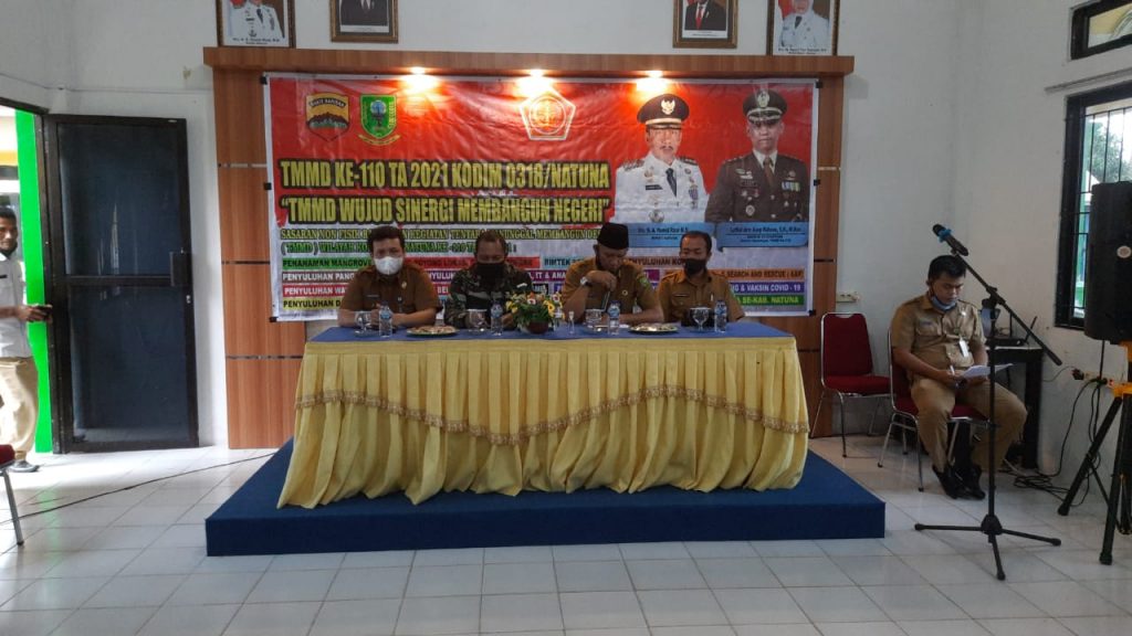 Acara dilaksanakan di Aula Pertemuan Kantor Camat Bunguran Timur pada Senin (15/3/2021). Dalam kesempatan ini Dandim 0318/Natuna Letkol Arm Asep Ridwan melalui Pasiter Kodim 0318/Natuna Kapten Arh Agus Sungkowo mengatakan, kagiatan ini merupakan bagian dari TMMD.