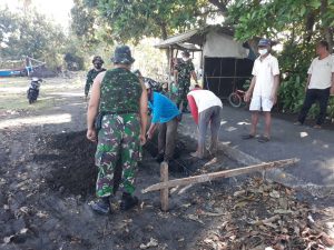 Jimbaran-Bali,Targethukum.com-Semangat gotong royong Personel TNI dalam hal ini Anggota Koramil 1617-01 Negara, Kodim 1617/Jembrana bersama warga sangat terlihat untuk melaksanakan karya bakti pembuatan drainase di sepanjang Jalan Bilawa, Banjar Dangin Berawah, Desa Perancak, Senin (03/04/2021).