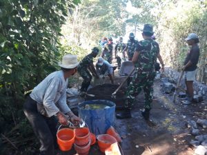 “Karya bakti bersama masyarakat merupakan wujud implementasi Delapan Wajib TNI dalam mengatasi kesulitan rakyat, dengan semangat gotong royong untuk memupuk jiwa kebersamaan sehinga kemanunggalan TNI dengan rakyat akan terwujud”, ucap Kapten Karyanto
