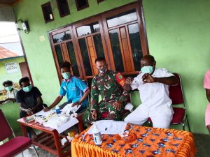 Yapen,Targethukum.com-Sebagai bentuk kepedulian terhadap kesehatan masyarakat di wilayah binaan, Serda M. Suharto Babinsa Koramil 1709-01/Yapsel melakukan kegiatan pendampingan pelayanan kesehatan yang diselenggarakan oleh Puskesmas Pembantu (Pustu) Ambaidiru, yang dilaksanakan di Kampung Ambaidiru, Dsitrik Kosiwo, Kab. Kep. Yapen, Senin (14/06/2021).