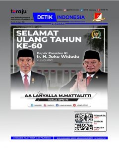JAKARTA,Targethukum.com – Presiden Joko Widodo memasuki usia yang ke-60 tahun, Senin (21/6/2021). Ketua DPD RI, AA LaNyalla Mahmud Mattalitti, tak lupa menyampaikan ucapan selamat serta mengutarakan sejumlah harapan.