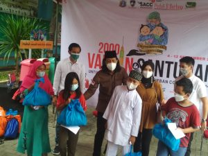 Pembina Shidik Community Centre (S’ACC), Shidik Andyansah membeberkan bahwa giat hari ini adalah vaksinasi dan santunan yang khusus kepada anak yatim yang orang tuanya korban Covid 19.