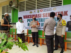 Sawangan -Depok ,Targethukum.comDalam upaya percepatan penanganan Covid-19 dan program vaksinasi nasional yang dicanangkan Pemerintah dan Kapolri Polsek Sawangan menggelar Vaksinasi Merdeka pada hari ini Senin tanggal 06 September 2021 pukul 08.00 Wib s/d selesai telah dilaksanakan *Vaksinasi Merdeka* oleh Polsek Sawangan Polres Metro Depok serentak pesantren dan rumah Ibadah di PESANTREN AL MA’MUN EDUCATION CENTER (AMEC) yang berlokasi di Jl. H. Nawi Malik RT. 02/04 Kel. Pondok Petir kec. Bojongsari Kota Depok.