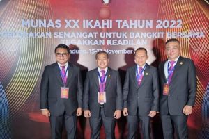 “Perhelatan MUNAS IKAHI tersebut dihadiri delegasi dari Pengurus Daerah yang masing-masing menyertakan 5 (lima) utusan ditambah satu delegasi dari cabang khusus Mahkamah Agung serta 2 ( dua ) orang peninjau dari masing-masing pengurus daerah.” kata Koordinator kepanitiaan seksi Kehumasan, Publikasi dan Dokumentasi Djuyamto, SH.MH.,saat dikonfirmasi awak media pada Selasa,(15/11/2022).