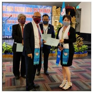 Terahir Ketua Umum BPP SANI Irwan Hadiwinata penyerahan penyematan pin emas SANI kepada Seketaris Jendral Fenni Yolandani SH,