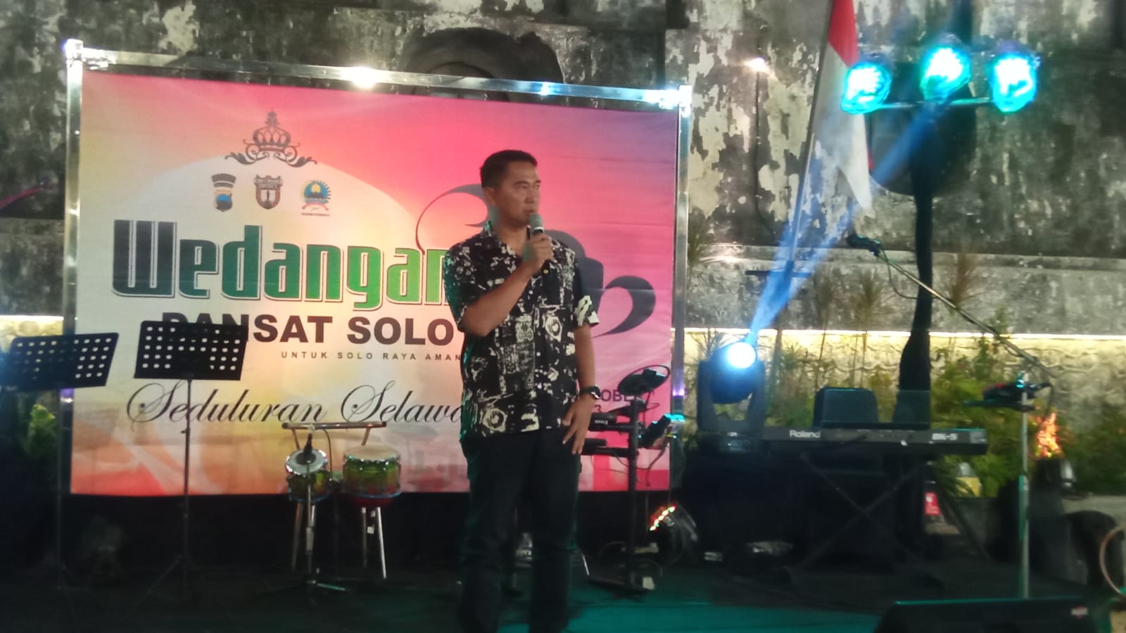 Dalam acra wedangan DANSAT Solo Raya ini di meriahkan oleh artis Ibu kota Desy San san,Kiki Artika greget yang di iringi musik Deny klo and The Well Band yang di pandu mc Kocak Kocrit.yang di balut dengan nuansa wedangan tradisional dengan aneka makanan khas Angkringan,mie godok dan nasi liwet khas Solo.