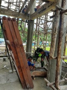 di ungkapkan Kopda Sudirman wakimin ikut mengambil bagian dalam pembangunan rumah ibadah yang ada di wilayah ini, merupakan sebuah kewajiban baginya sebagai babinsa yang harus membantu segala kesulitan masyarakat, tak hanya it, bantuan yang di berikanya ini juga merupakan sebuah tanggung jawab moral baginya sebagai sesama umat beragama,, ungkapnya.