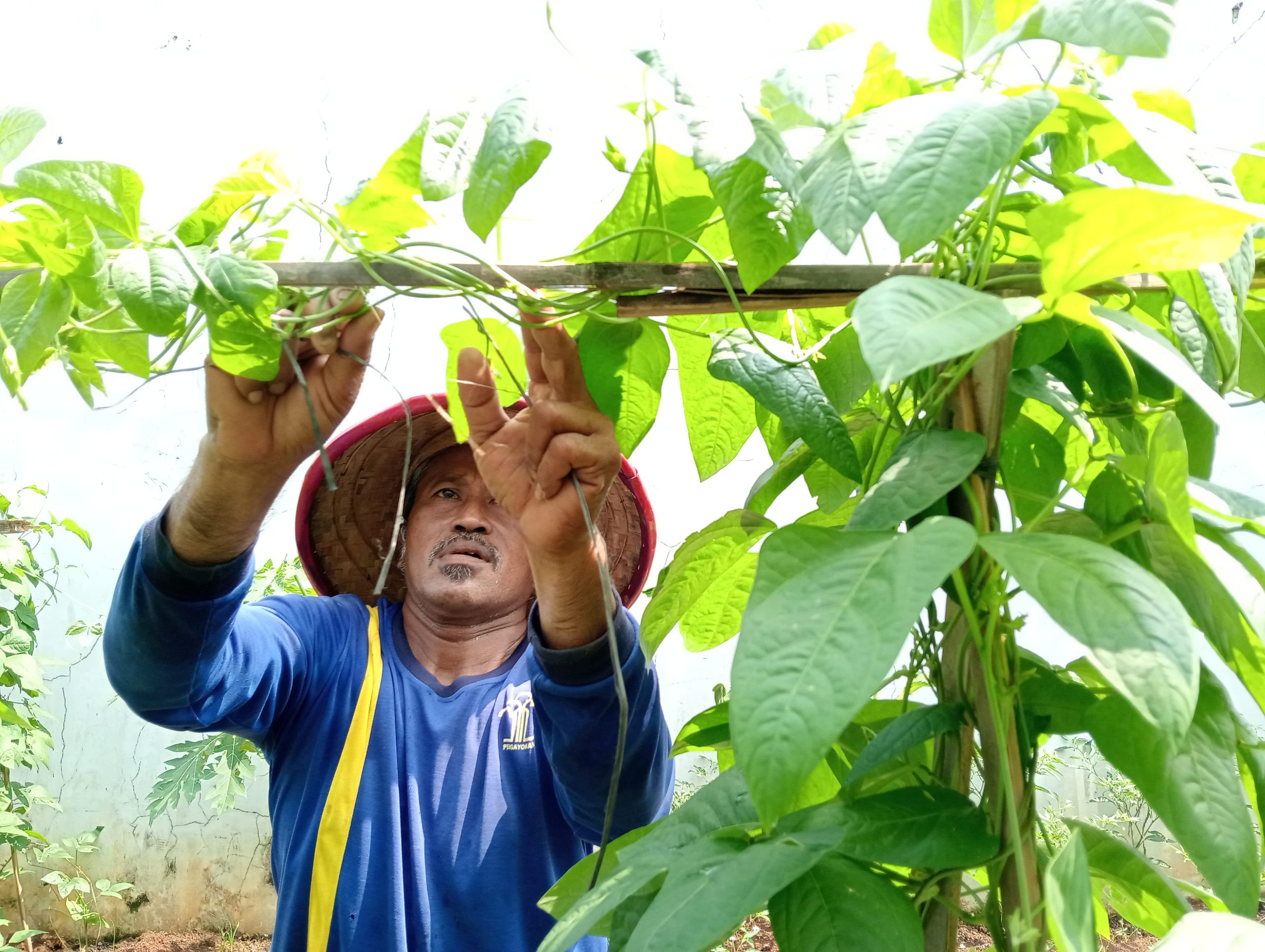 WUJUDKAN LAPAS HIJAU DAN MANDIRI, LAPAS KELAS IIA PURWOKERTO LAKSANAKAN PERAWATAN TANAMAN KACANG PANJANG